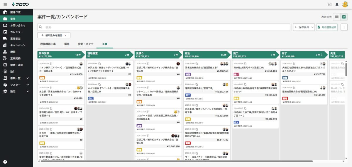 • カンバンボードで案件のフェーズ管理を可視化し、進捗確認時間を削減