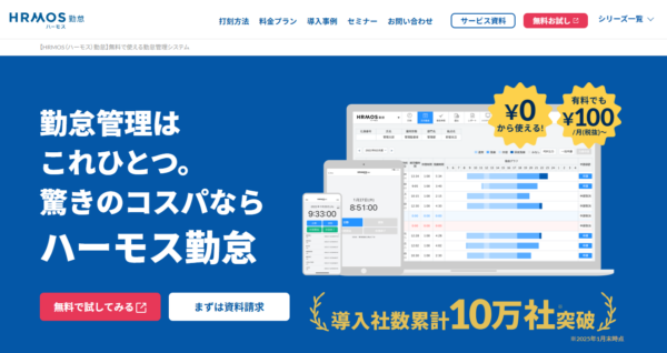 | ハーモス勤怠 | 0円(30名以下) | 30名以下の小規模事業者なら、基本機能を永年無料で利用できる。 | まずはコストをかけずにデジタル化を試せる。 |