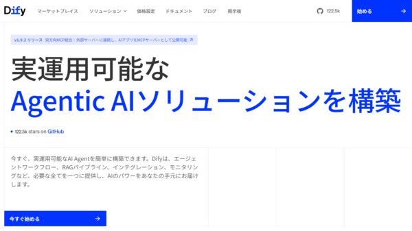| Dify | オープンソースで、複数のAIを組み合わせた独自エージェントをノーコードで構築可能 | 自社専用のAIエージェントを柔軟にカスタマイズしたい企業向け |