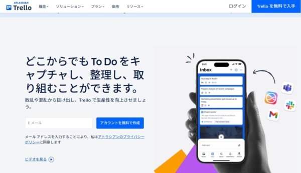 Trello無料〜5ドル付箋感覚のカンバン方式。直感的なドラッグ&ドロップ操作。無料プランで基本機能充実。小規模チーム、タスク管理初心者