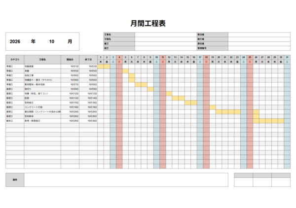 バーチャート工程表テンプレート3種!エクセルで月間スケジュールを管理する
