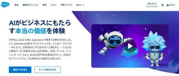 Salesforce高いカスタマイズ性と豊富な連携機能中堅〜大企業1ユーザー月額3,000円〜
