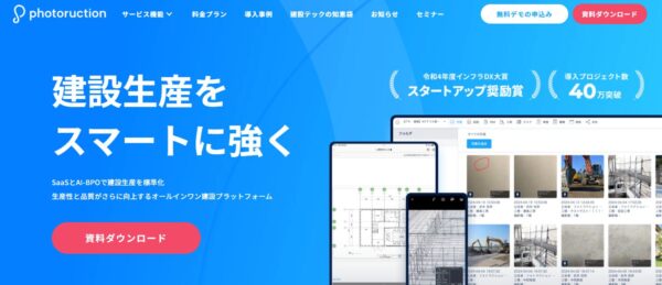 | Photoruction | 写真、図面、タスク、工程、検査、書類作成、AI自動解析など | データを一括集約。自動化やBPO活用により、技術者が本来の業務に集中できる環境を作ります |