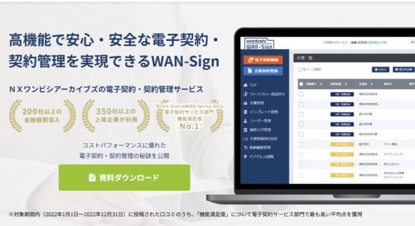 | Wan-Sign | 紙の契約書の原本保管とスキャン代行を請け負う。システム上で電子も紙も同じように検索・管理 | 過去の紙の原本の保管も任せたい企業 |