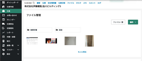 案件情報との紐づけ報告書や写真を案件ごとに一元管理過去の報告書や工事内容の確認の手間を削減