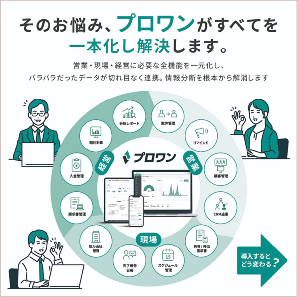 | 案件一元管理 | 営業・メンテナンス・東京支社で統一運用 | 属人的な管理方法を標準化 |