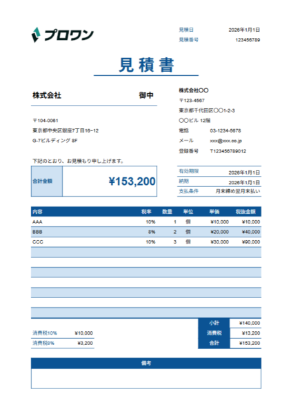 見積書テンプレート(複数税率)