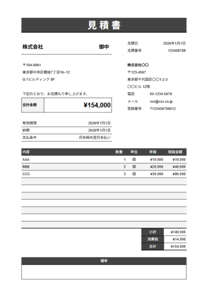 | 見積日 | 見積書の発行日 | 任意 |