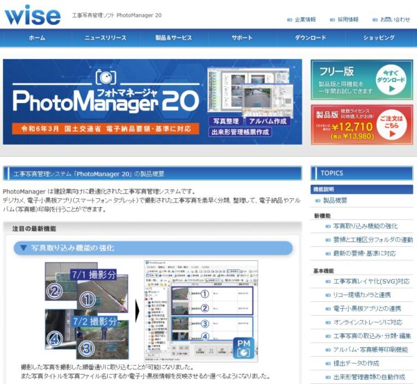 PhotoManager 20は現場写真の管理に特化した25年間以上も使われているソフトウェアです。スマホで撮影して、オンラインストレージを介して、自動で整理整頓されます。事前に施工管理情報を入力しておくと、自動でその内容も反映されます。