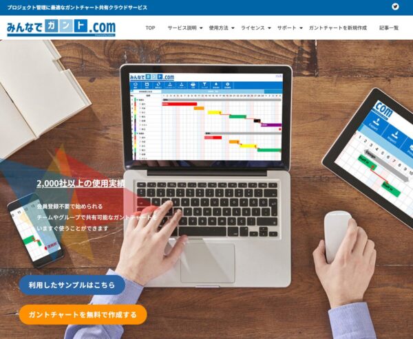 みんなでガント.comは、直感的なガントチャート作成による計画の見える化から、ToDo機能による課題管理、チーム間でのリアルタイム共有まで、プロジェクト運営に必要な全機能を1つのクラウドサービスで提供します。