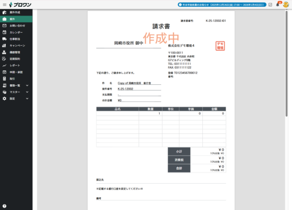 食品、飲料、医薬品業界向けのプラント工事を手掛ける株式会社佐々木プラントは、請求書管理ができる業務システムを導入し、見積書や請求書のフォーマット統一とを実現しました。このシステムの特徴は以下のとおりです。