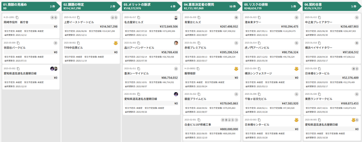 商談から契約までのカンバンボードの実画面