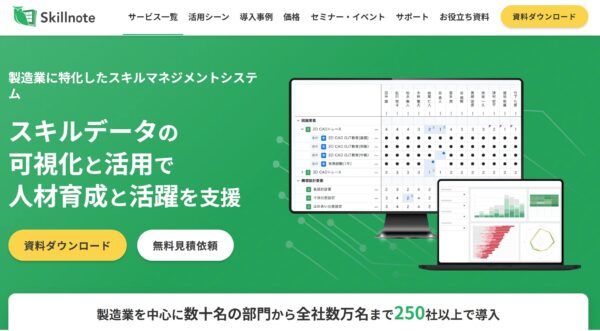 Skillnote製造業に特化、現場の力量管理を徹底「スキルマップ」を自動生成、育成計画と連動でき