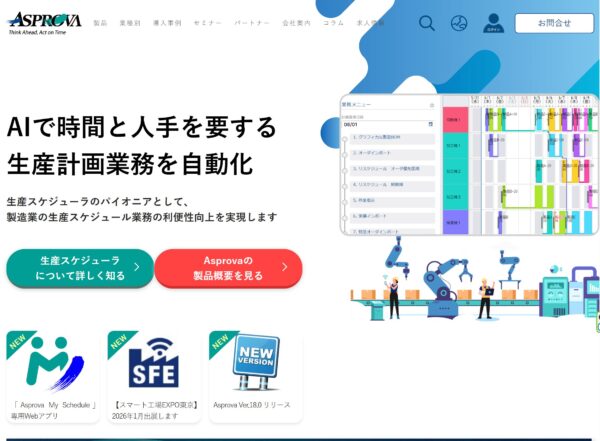 Asprova製造業特化、超複雑な工程と多能工の組み合わせを最適化スキルだけでなく、熟度の差まで考慮して、最短の生産計画をAIが自動作成、数万件の工程を数秒で計算可能