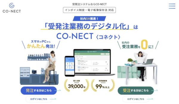 | CO-NECT | 発注書をFAXへ自動変換して、システムから自動的にFAX送信できる | 取引先がまだアナログな方法を使っている場合でも、対応可能。初期費用無料で導入が手軽 |