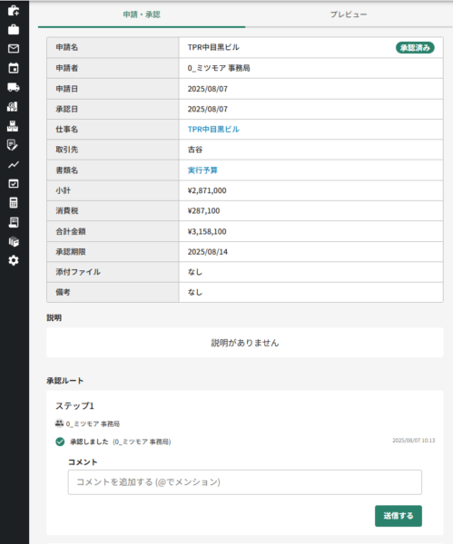 見積もり・予算の承認機能作成から決裁までをシステム上で処理紙とExcelの回覧が不要になった